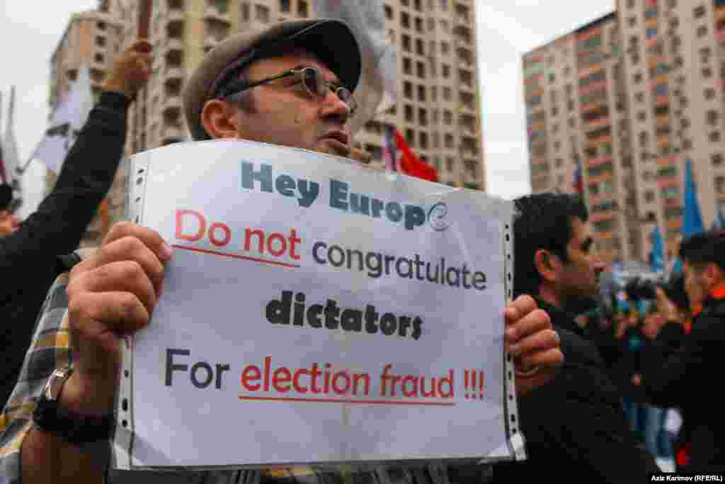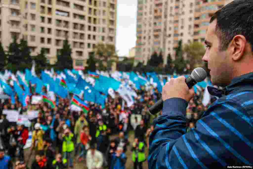 27 октября Национальный Совет провел согласованный с исполнительной властью Баку митинг протеста против итогов президентских выборов на стадионе спортивно-оздоровительного центра «Мехсул» Ясамальского района. На митинге выступили кандидат в президенты Азербайджана Джамиль Гасанли, политики, молодежные активисты. Фоторепортаж Азиза Эльханоглу, Азербайджанская служба РСЕ/РС
