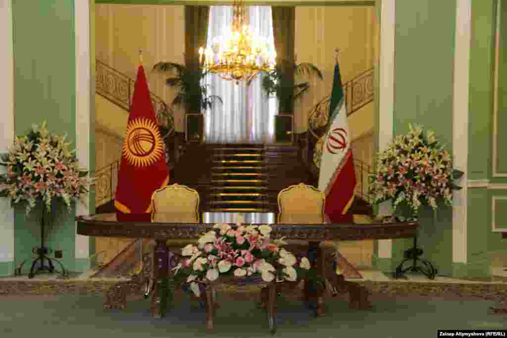 Президент Алмазбек Атамбаев с официальным визитом посетил Иран. В городе Тегеране глава государства провел переговоры в расширенном составе с президентом республики Хасаном Роухани, со спикером парламента, с духовным лидером и другими. В этом фоторепортаже вы сможете увидеть, как иранская сторона готовилась к визиту кыргызской делегации.