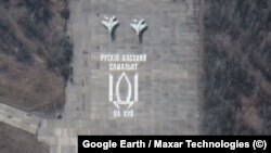 Спутниковые снимки аэродрома в Василькове, где базируется 40-я бригада, показывают, что у украинских летчиков, противостоявших превосходящим их силам соперника, была не только отвага, но и чувство юмора. Вскоре после начала войны с помощью трафарета и краски они нанесли на взлетно-посадочную полосу надпись, перефразирующую другую ставшую легендарной фразу, про "русский военный корабль", сказанную по рации украинским пограничником на острове Змеиный в ответ на предложение сдаться.